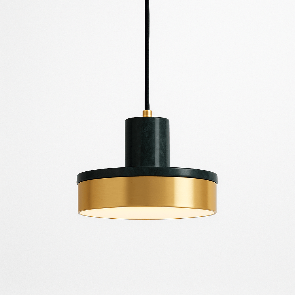 The Konigs Pendant Light masterfully blends contemporary aesthetics with premium craftsmanship, delivering an exceptional lighting experience. This distinguished fixture showcases a refined circular silhouette, artfully combining brass or iron with natural marble accents. Its geometric form radiates gentle illumination while maintaining architectural elegance. Offered in black, green, or white marble variations, this pendant seamlessly integrates with modern, industrial, or traditional design schemes. Perfect for culinary spaces, dining environments, and gathering areas, the Konigs pendant establishes an atmosphere of refined luxury through superior materials and harmonious proportions.