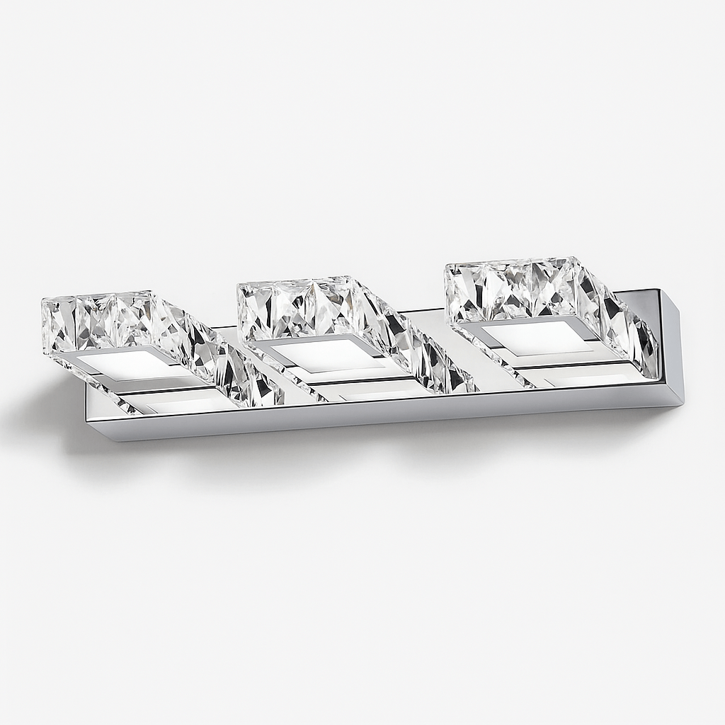 Architectural crystal and steel fixture creates serene atmospheric lighting β€” transforming hallways, bedrooms, and bathrooms with geometric elegance.