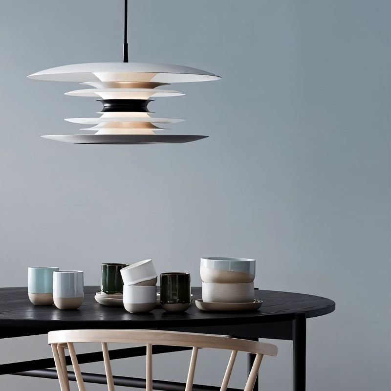 Artisan tiered aluminum construction delivers uniform radiance without harsh brightness, creating sophisticated ambiance in dining and contemporary spaces.