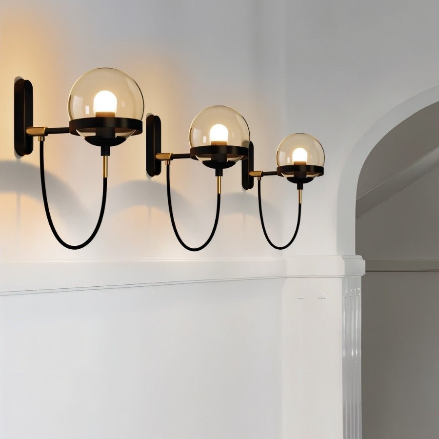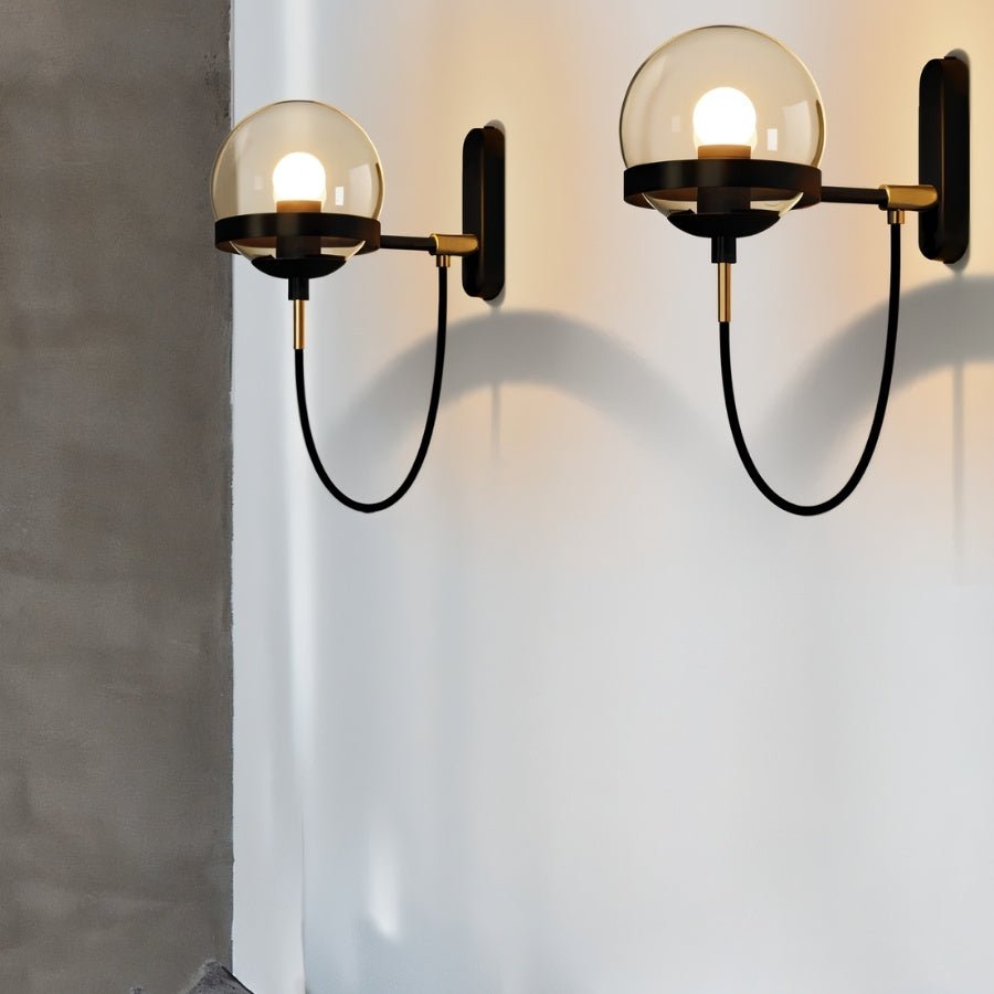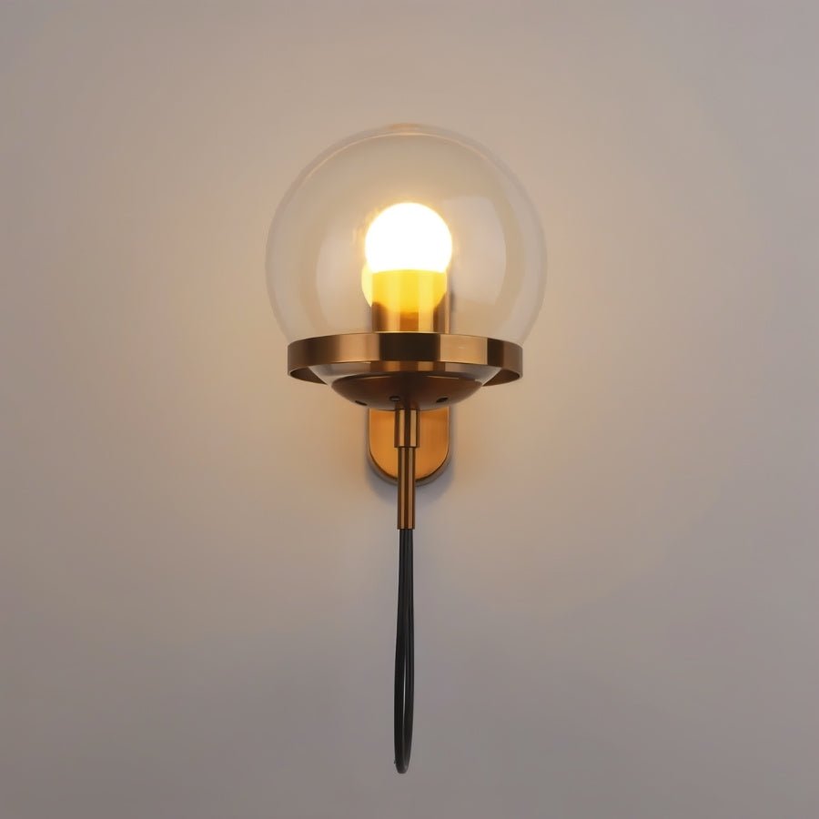 The Uzerche Wall Lamp showcases an exquisite metal construction in sophisticated black or warm brass, perfectly complemented by an elegant spherical glass diffuser. This refined design incorporates a gracefully suspended black cable and robust metal mounting system, making it an exceptional addition to sophisticated living spaces, intimate bedrooms, or distinguished hallways. The harmonious blend of premium glass and metal elements radiates opulence, while the thoughtful proportions ensure adaptability across diverse settings. This luminaire represents the pinnacle of refined taste for cultivating a welcoming, upscale environment.