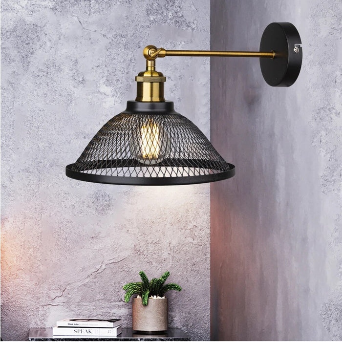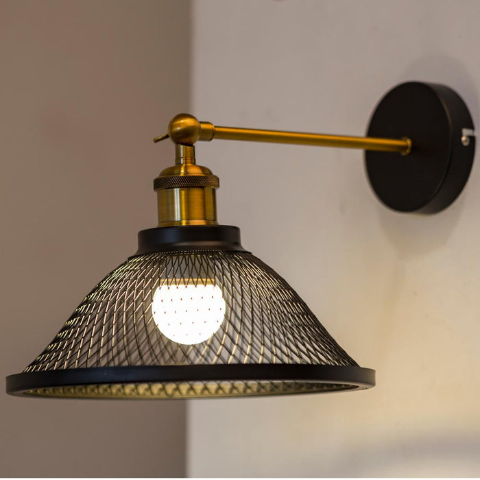 Infused with the nostalgic allure of barn lights, the Elowen Wall Lamp emerges as a captivating masterpiece that effortlessly revitalizes any room. Its chic industrial charm resonates through its conical domed design, adorned with a cast socket cover and a metallic mesh shade. Offered in a timeless black powder-coated finish with brass accents, the Elowen transcends trends, remaining a versatile and timeless lamp that exudes remarkable visual splendor. Embrace its presence, knowing it will complement your evolving interior style for years to come.