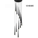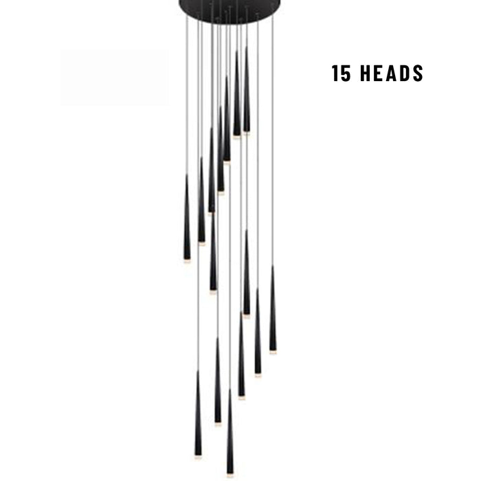 This LED Long Downlight Chandelier is a visually striking show piece that plays on the eyes. Choose the number of downlight heads depending on how high your ceiling is. The 3 head chandelier can be used anywhere whilst the 6 head, 9 head, 12 head vertical orientation works best featured as lighting for a staircase void.