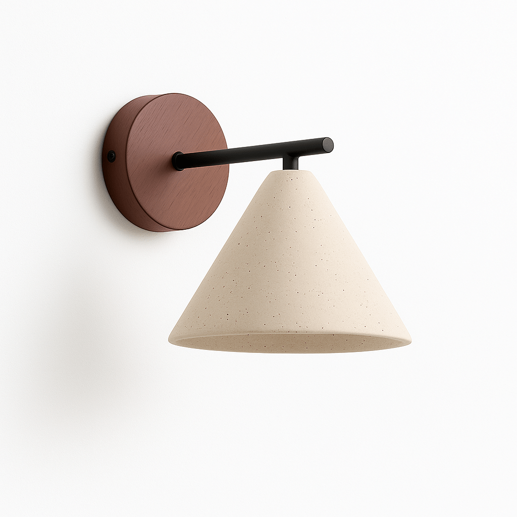 The Aude Wall Lamp showcases exquisite travertine craftsmanship in a sleekly tapered silhouette that radiates gentle luminosity throughout refined living spaces. Its precisely sculpted conical form harmonizes organic stone textures with architectural precision, while the contrasting mount finish delivers elevated visual impact. This sophisticated interplay of raw travertine and polished dark elements establishes an exceptional synthesis of earthy authenticity and metropolitan refinement.