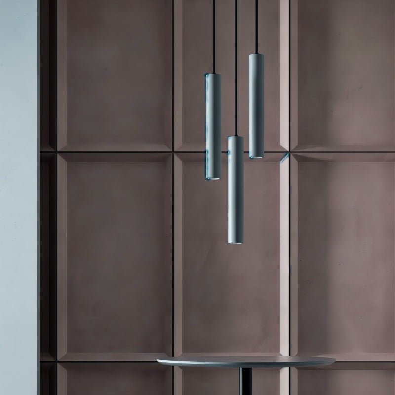 Refined concrete cylinder delivers precision directional lighting — expertly crafted for culinary islands and sophisticated dining spaces.