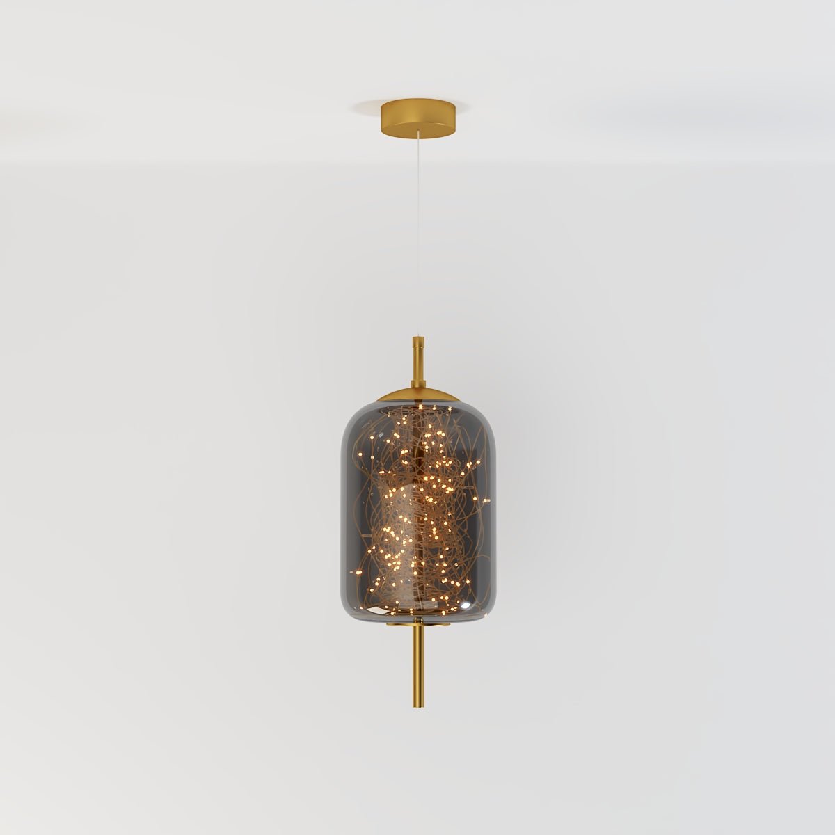 • Mesmerizing Cosmic Illumination: The tinted glass featuring luminous accents generates an otherworldly atmosphere, infusing spaces with magical allure and distinguished character.