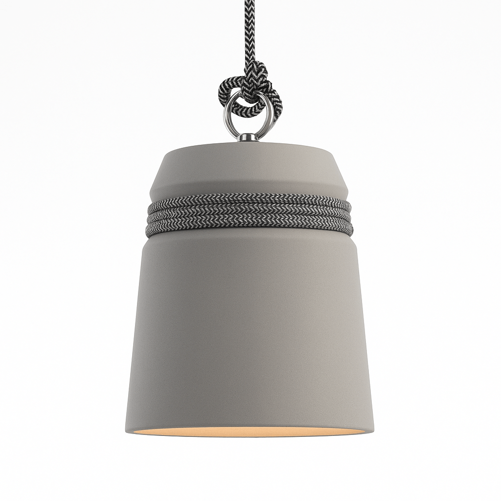 The Barnim Pendant Light features premium concrete construction with elegant rope suspension elements for sophisticated durability.