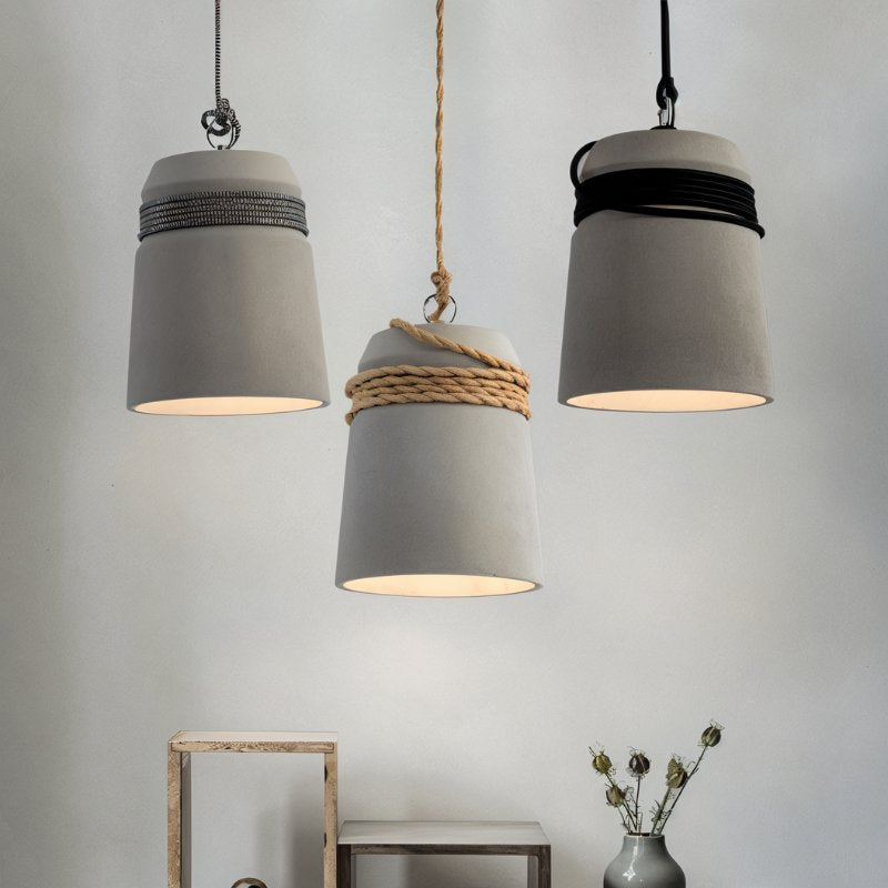 Barnim Pendant Light showcases refined architectural aesthetics through its distinctive concrete vessel suspended with elegant rope detailing. This statement fixture delivers exceptional illumination across your entertaining areas, nightstands, and culinary workspaces. Barnim excels at introducing sophisticated urban elements into your interior, creating stunning visual impact whether displayed individually or in curated groupings.