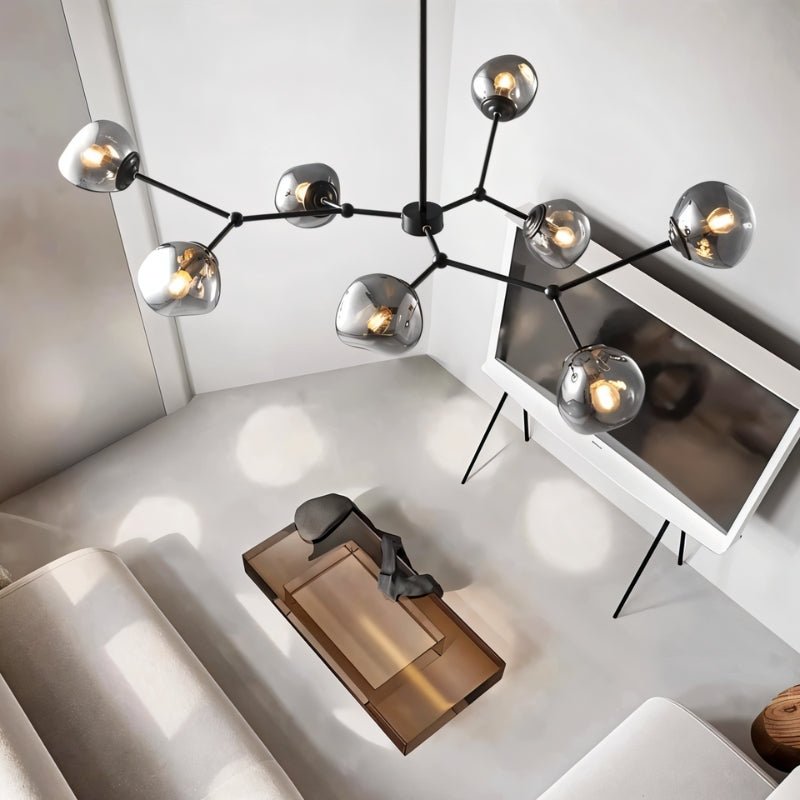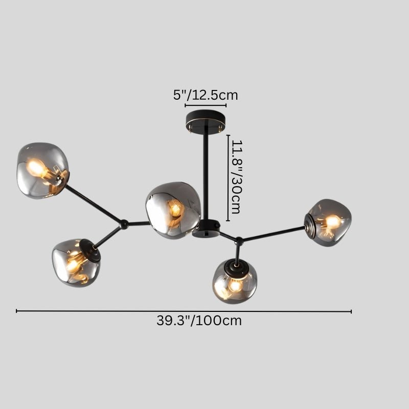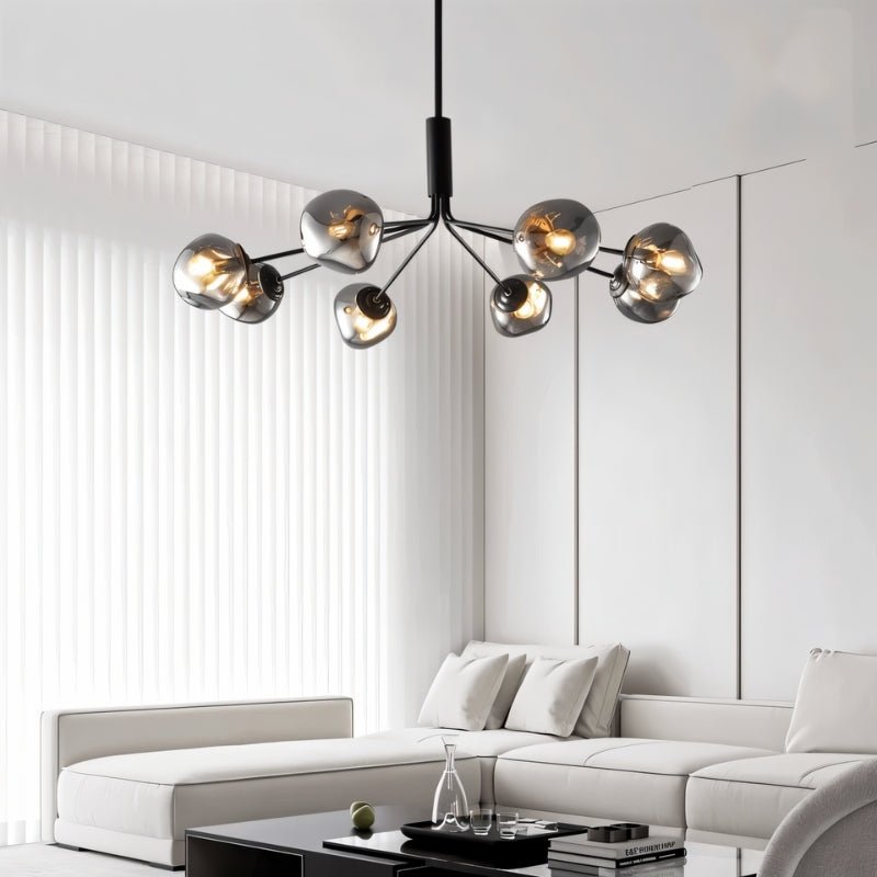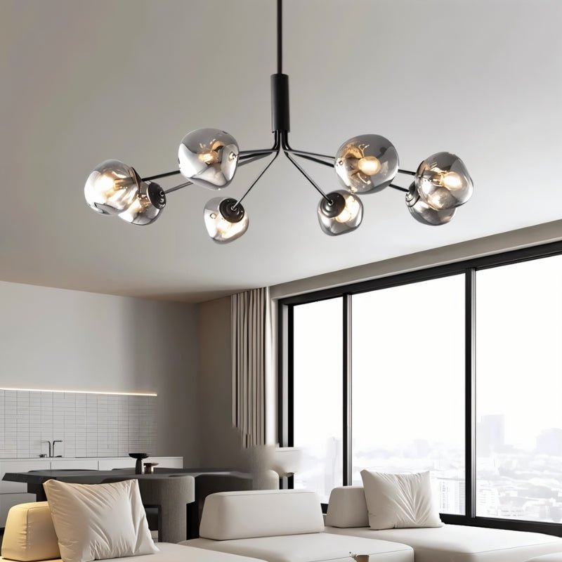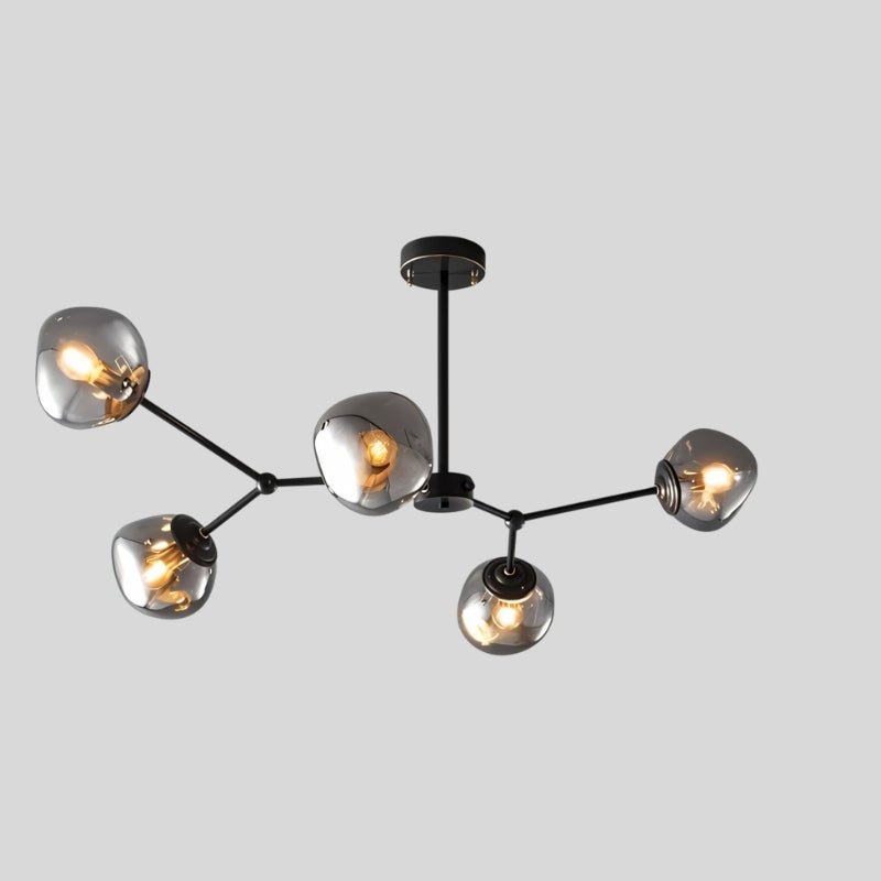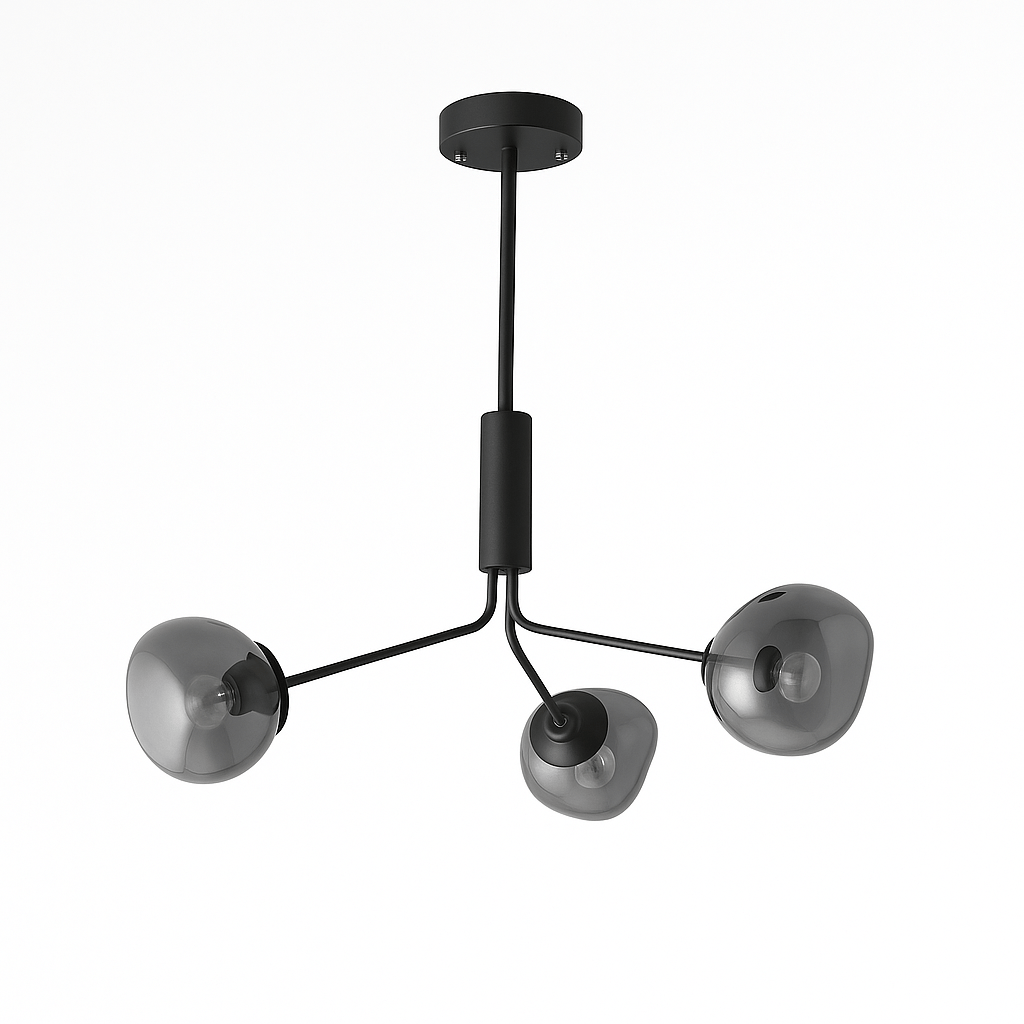 The Gavdos Ceiling Lamp represents sophisticated illumination through its architectural iron and alloy construction. Distinguished by geometric arms crowned with tinted glass components, this fixture delivers gentle, diffused radiance throughout your space. The matte black metalwork beautifully juxtaposes against translucent glass elements, establishing a commanding presence within contemporary and industrial environments. Perfect for expansive living areas, dining spaces, and open-plan layouts, this luminaire transforms elevated ceilings into dramatic design statements. Merging robust craftsmanship with cutting-edge aesthetics, it functions as essential lighting while serving as an captivating centerpiece.