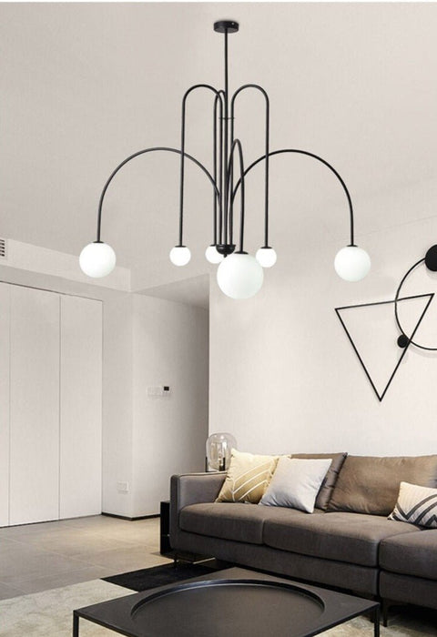 Embark on a journey of timeless elegance with the Amelia Chandelier, where classical and contemporary elements harmonize seamlessly. This enchanting fixture showcases a captivating arrangement of gracefully arched iron frames adorned with delicately blown opal glass globe shades, casting a warm and romantic glow. Elevate your living space with the enduring charm of the Amelia Chandelier.
