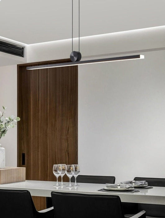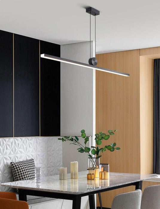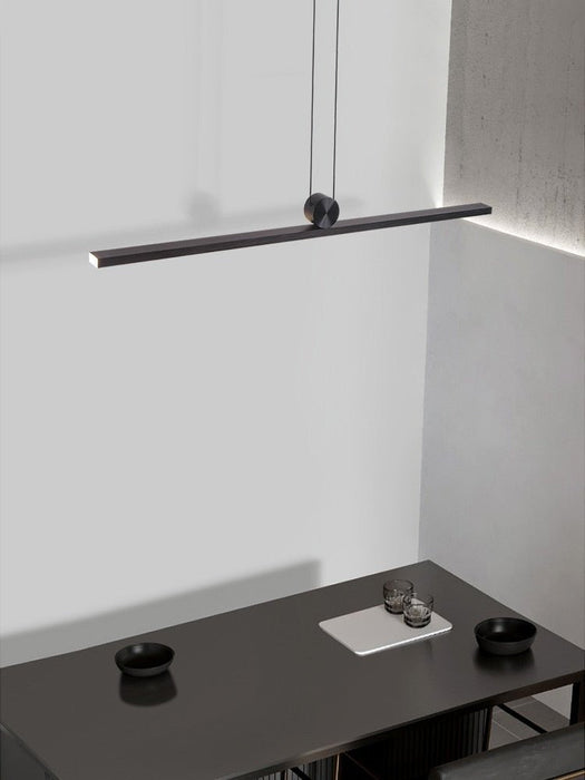 Meticulously crafted from durable brushed black aluminum and adorned with an acrylic diffuser, the Eir Pendant Light emanates a gentle and enchanting glow. Its streamlined, linear form, elegantly suspended by an adjustable cable, weaves a tapestry of refined ambiance. This pendant light embodies timeless elegance, featuring impeccable proportions and composition that seamlessly blend with any interior decor style, from understated to avant-garde.
