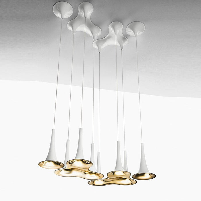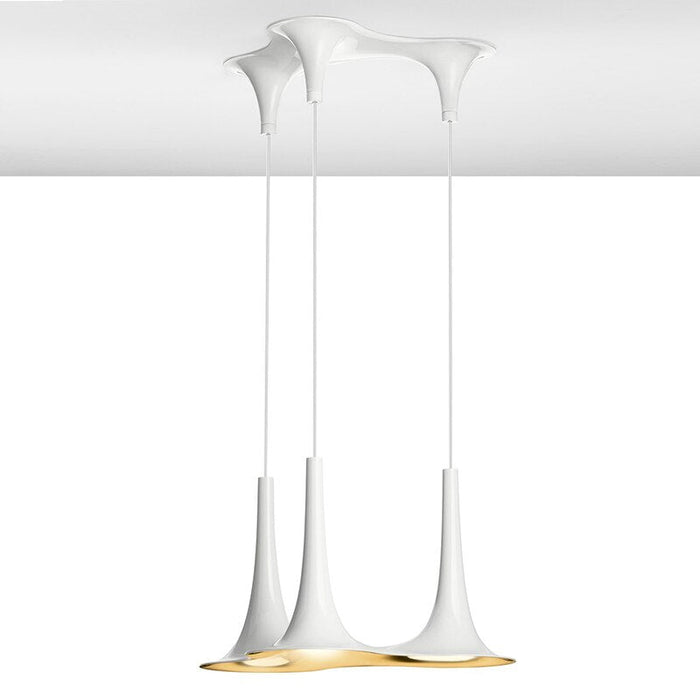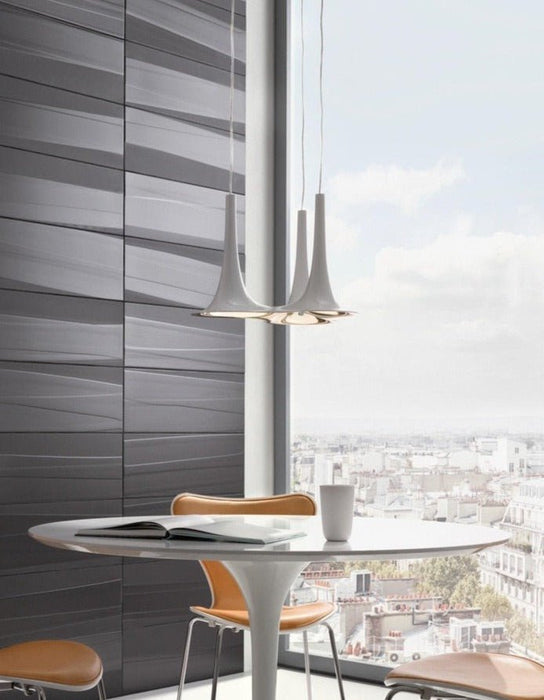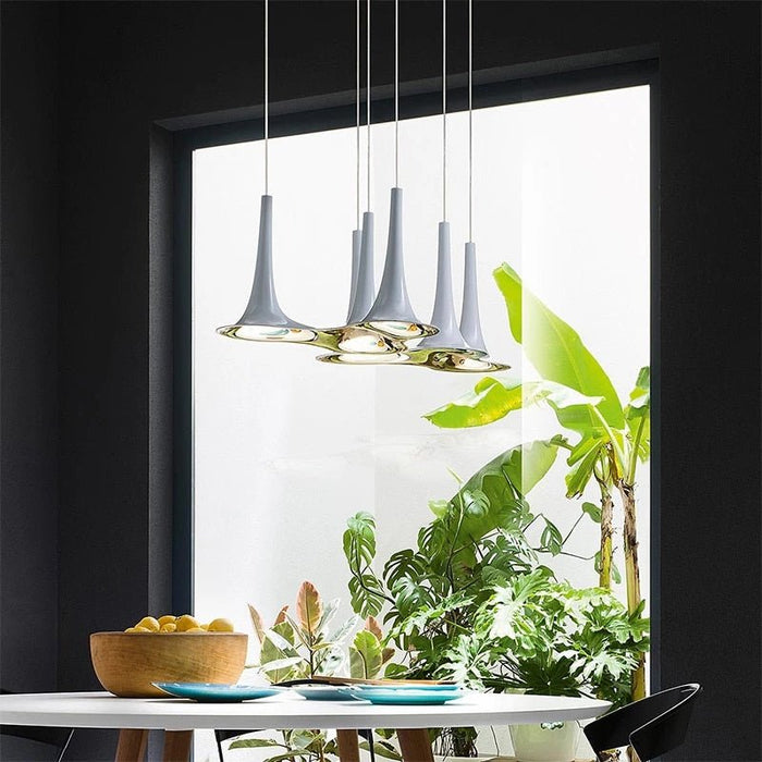 Elevate your interior with the Maxim Pendant Light, a cutting-edge statement piece that redefines indoor lighting. Featuring a dynamic and extraordinary design, this pendant light commands attention and adds flair to any decor. Its trumpet-shaped silhouette, finished in glossy white, exudes sophistication and charm, making it the focal point of your space.