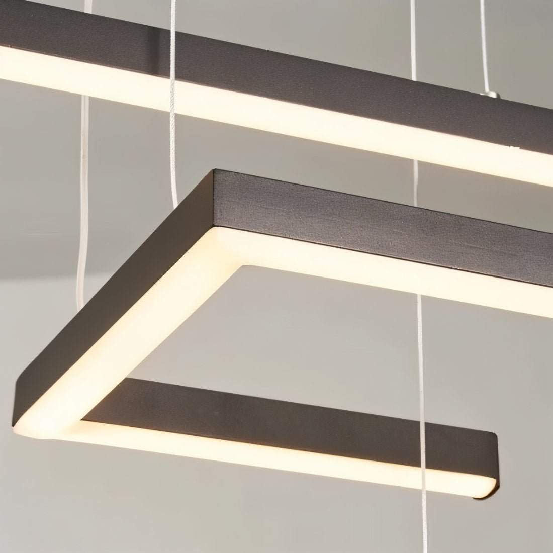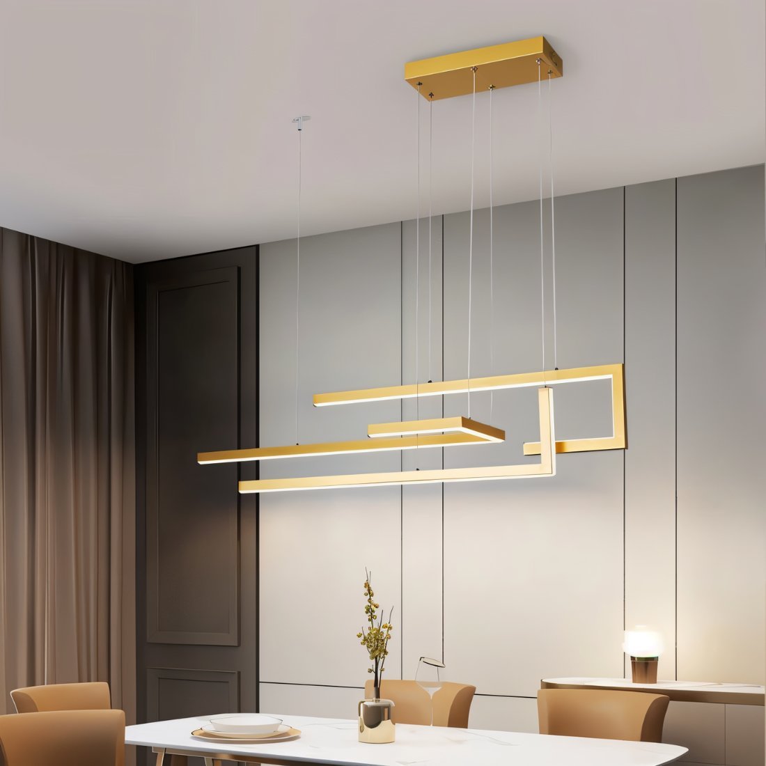 Lustrous metallic chandelier transforms interiors with radiant LED illumination and architectural linear design for elevated contemporary living.