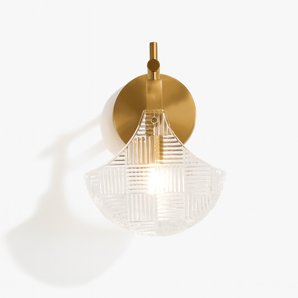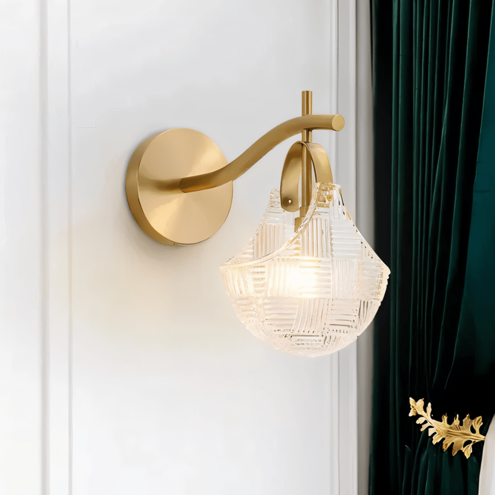 The Acqueville Wall Lamp showcases an artisan-crafted brushed copper framework paired with a distinctive fluted glass diffuser displaying contemporary geometric detailing for sophisticated wall lighting. This premium fixture features hand-finished copper construction and expertly formed glass components, delivering an exquisite harmony of style and performance. Its graceful curved mounting and streamlined silhouette make it perfectly suited for corridors, master suites, or powder rooms. The wall-integrated design provides gentle atmospheric lighting while functioning as an architectural statement piece. Perfect for upscale residential and exclusive commercial environments.