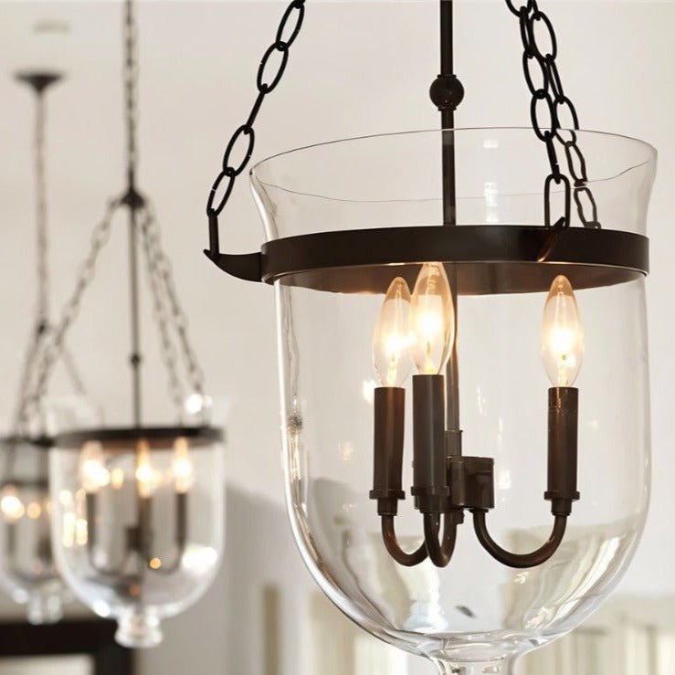 Exquisite iron-glass pendant with customizable chain height delivers enchanting candlelit ambiance — ideal for elevating dining and kitchen spaces.