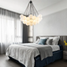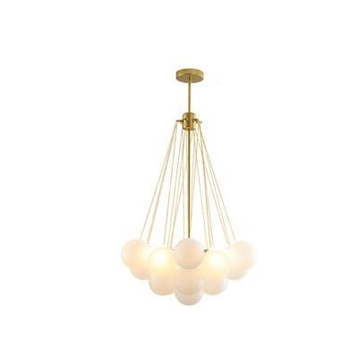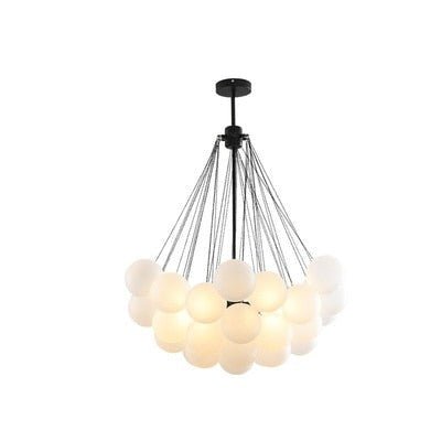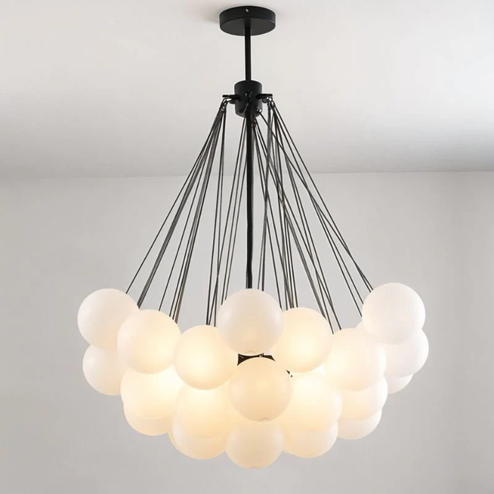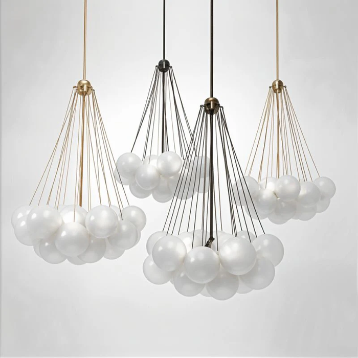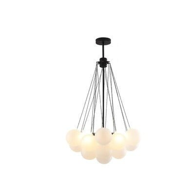 The Blaise Chandelier combines frosted glass spheres, fine metal chains, and soft lighting to create a stunning piece of art that exudes elegance and sophistication.