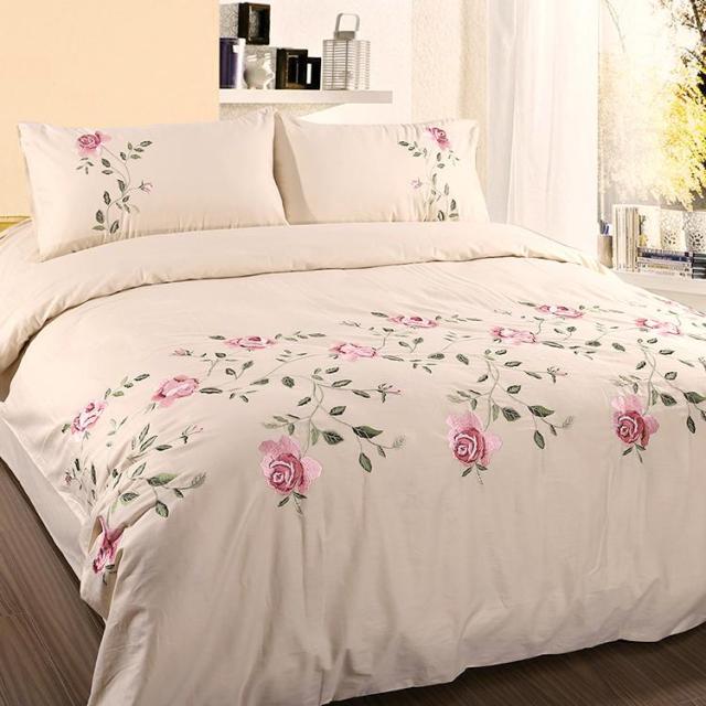 Flowers & Leaves Embroidered Duvet Cover Set