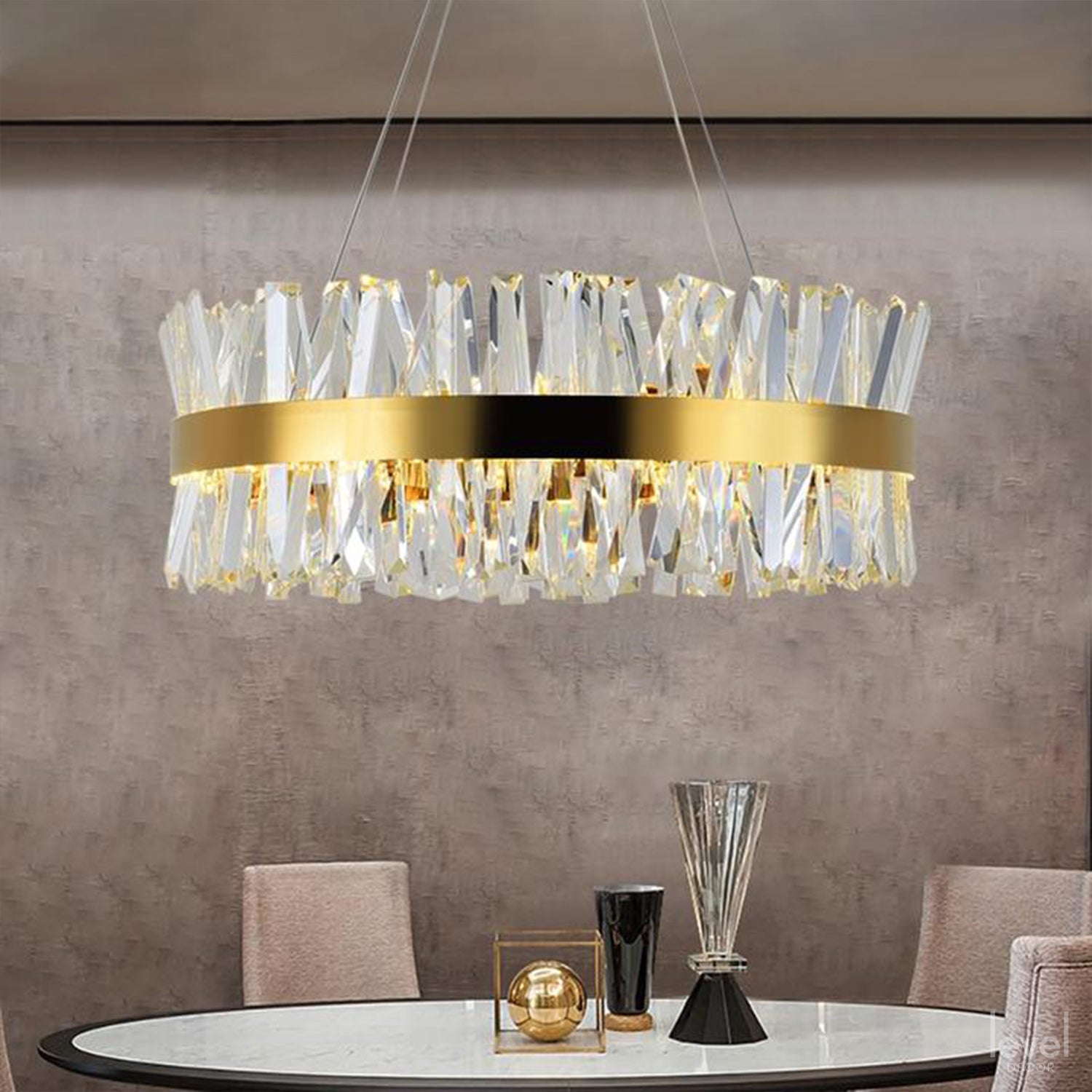 Features a luxury aesthetic that pairs effortlessly with contemporary, transitional, and eclectic interiors for a cohesive design statement.