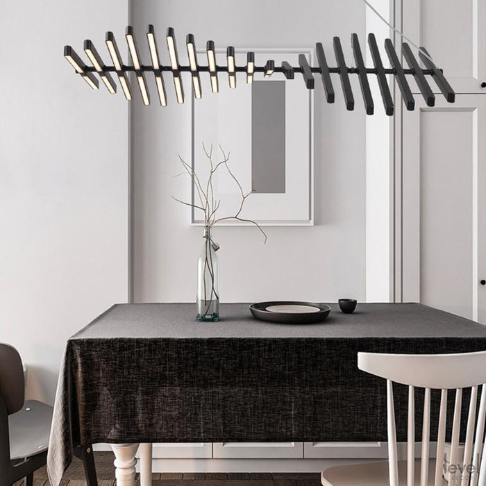 Express your personal style with this Nordic fishbone designer chandelier and make your living space an extension of yourself. With an Aluminum and Acrylic body available in 2 lampshade colors, this chandelier creates a swirled fishbone effect that is sure to be a statement piece in your space.