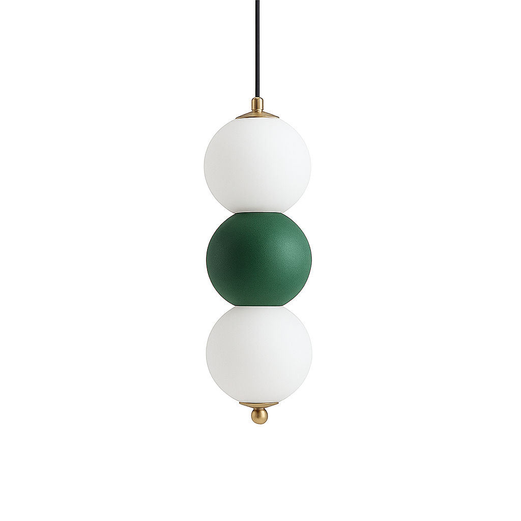 The Simiane Pendant Light features an elegant arrangement of layered metallic orbs complemented by translucent glass spheres, establishing a captivating interplay of materials and luminosity. Constructed from premium metal and iron, this contemporary lighting solution delivers gentle, evenly distributed illumination, ideal for intimate bedroom settings, cozy study corners, sophisticated dining areas, or cutting-edge interior spaces. Its refined profile perfectly complements minimalist, mid-century modern, and Nordic design philosophies, establishing itself as a commanding focal point in any environment.
